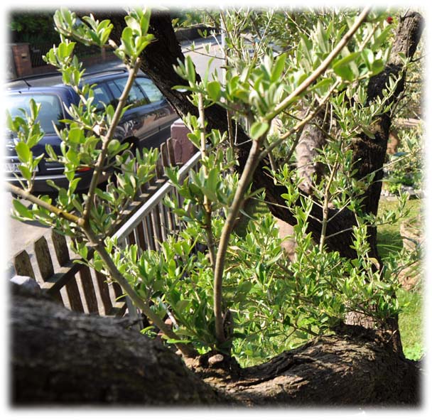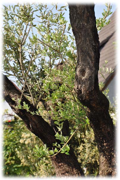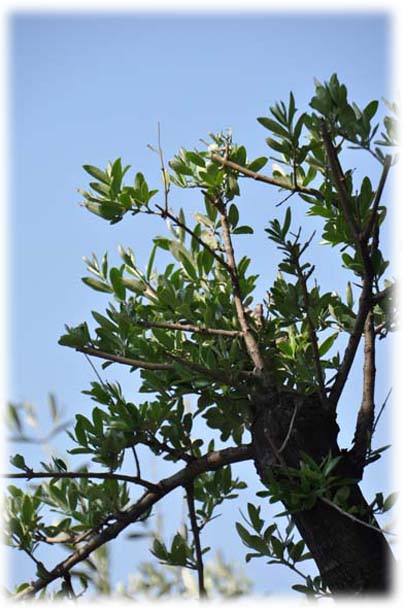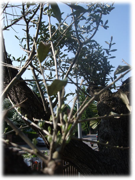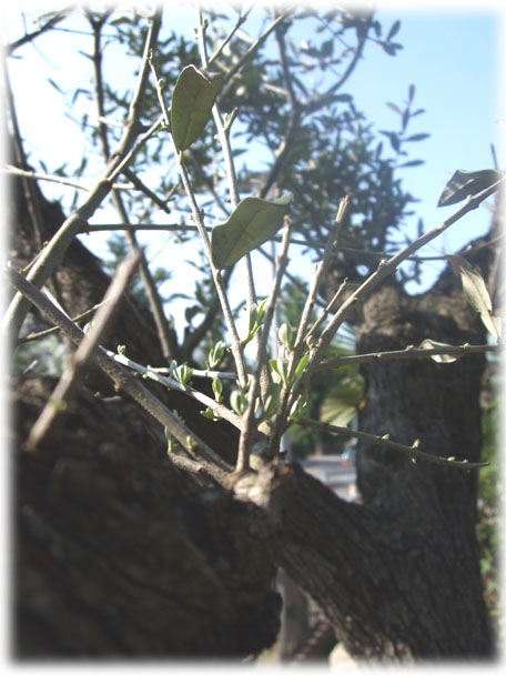 Die neuen Triebe an unseren Olivenbäumen nach dem zweiten Jahrhundertwinter in Folge 2009/2010