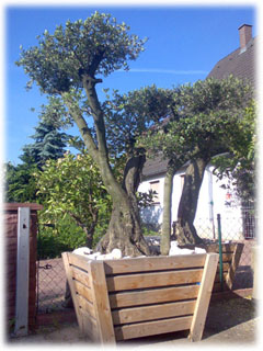 - in dekorativen Holzbehältnissen (Winter einlagern wird empfohlen) oder Sie erhalten Ihren Olivenbaum in einem isolierten Holzbehältnis versehen mit einer Wurzelheizung.