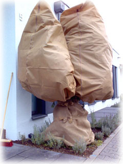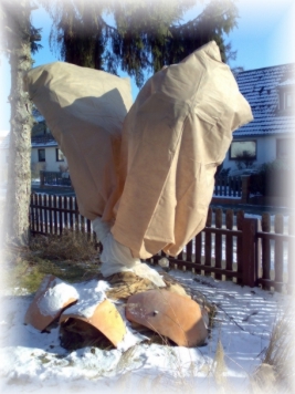- mit Rindenmulsch, Laub und Vlies gegen den Frost.