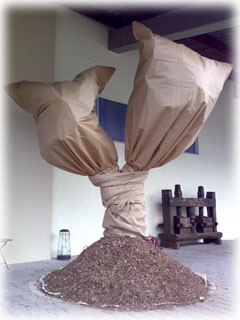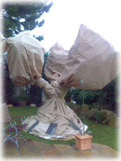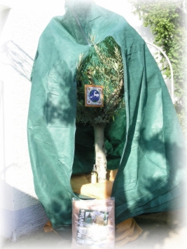 - Unsere speziell angefertigte XXL-Vlieshaube für übergroße Olivenbäume.