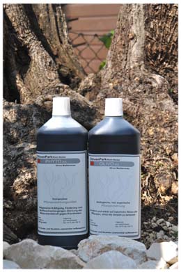 - Unser rein biologischer Dünger "OlivoSol" und "PhytoSol" (Eiweiß/Aminosäuren und Meeresalgensaft) zur Wurzelbildung und Ernährung. Der Dünger fördert die Abwehr- und Widerstandskräfte des Olivenbaums.