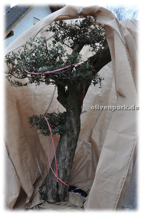 Unsere Winterschutzsets haben wir seit mehreren Jahren entwickelt. Deshalb konnten wir unsere Olivenbäume mit Erfolg in den letzten harten Wintern schützten.